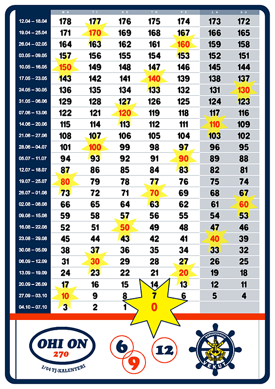 На моем новом месте службы в Suomenlinna, в составе немногочисленного взвода постоянно числился график, который к тому же большую часть времени маялся от безделья. Поэтому и импровизированные дембельские календарики были сделаны здесь на принципиально другом уровне. Унаследовав от своего предшественника архивы, я, покопавшись на жестком диске, нашел, что искал — полиграфическую версию календарика за прошлый год. К концу дня обновленный TJ-kalenteri был готов.