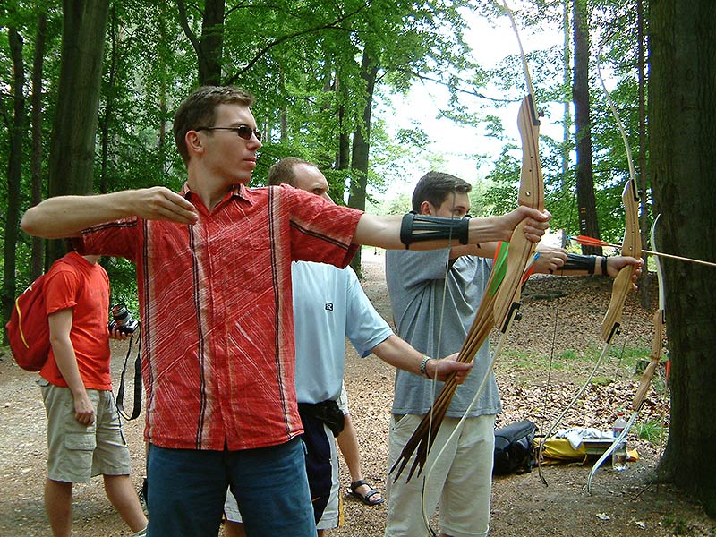 В субботу утром добрались до Турнова (Turnov), который находится в 130 километрах от Праги. За чертой города сразу нырнули в лес, двигаясь утоптанными туристическими дорожками. То, что организаторы называли лёгкой прогулкой, большинству участников показалось изматывающим маршем. Шесть часов ходьбы по холмистой местности укатали всех без исключения. По пути встретился предприниматель, который за небольшую плату давал каждому пострелять из лука неограниченное количество времени, пока не надоест. Маркетинг был гениальный, потому что после десятка выстрелов кончики пальцев неумелых стрелков начинали гореть, а сгиб локтя покрывался кровоподтёками, несмотря на надетые краги, так что желание продолжать стрельбу пропадало уже после первого десятка выстрелов и довольный бизнесмен отдавал лук следующему наивному туристу.
