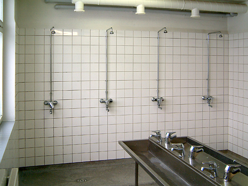 В туалетах с внутренней стороны дверей нет шпингалетов, так что для того чтобы оправиться без нечаянных свидетелей следует не забыть сделать как минимум две вещи — выставить носки обуви из-под дверцы наружу, для наглядной сигнализации, что кабинка занята и одновременно тянуть ручку двери изнутри на себя изо всех сил — для активной защиты от незваных гостей. На жалобы по поводу невозможности уединения нам рассказали историю из разряда «вот в наше время, 20 лет назад…» Оказывается раньше сортиры были типа «очко» в два ряда и, сидя в позе орла, боец не отрываясь смотрел в большие глаза товарища напротив. По словам рассказчика, это необыкновенно сплачивало коллектив.