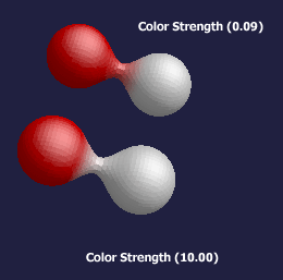 Слайдер Color Strength работает также как и Mesh Strength, но воздействует не на геометрию, а на цвет. Цвет метабола с большим Color Strength захватывает больше площади поверхности объекта.