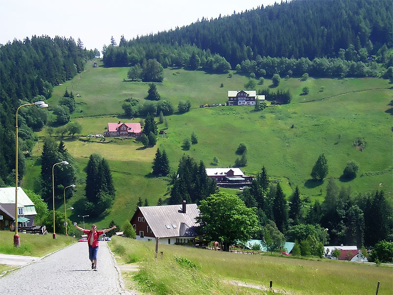 Организаторы позаботилась обо всём — автобусных билетах, коттедже на ночь и маршруте по склону к вершине. Мне же оставалось только время от времени избавляться от определённых сумм денег и не терять из вида группу во время восхождения. Я чуть не опоздал на автобус, ошибочно решив, что указанное в электронном письме время — это время встречи, а не отхода автобуса. Однако, неловкое положение было быстро забыто, благодаря полутора литровой бутылке домашней сливовицы, которую мы непринуждённо распили прямо на ходу. Группа студентов подобралась колоритная: сексуально озабоченный финн по прозвищу Jani the Sausage, американец-экстримал с пленочной зеркалкой и набором стёкол, канадка-католичка с ортодоксальными взглядами на секс до брака. Всё это было разбавлено известным количеством чешских камрадов. Под действием алкоголя время летело незаметно и через три часа наша группа уже вглядывалась в синеющие на горизонте холмы, вид которых поначалу сильно разочаровал, потому что воображение почему-то рисовало отвесные скалы и заснеженные горные пики.