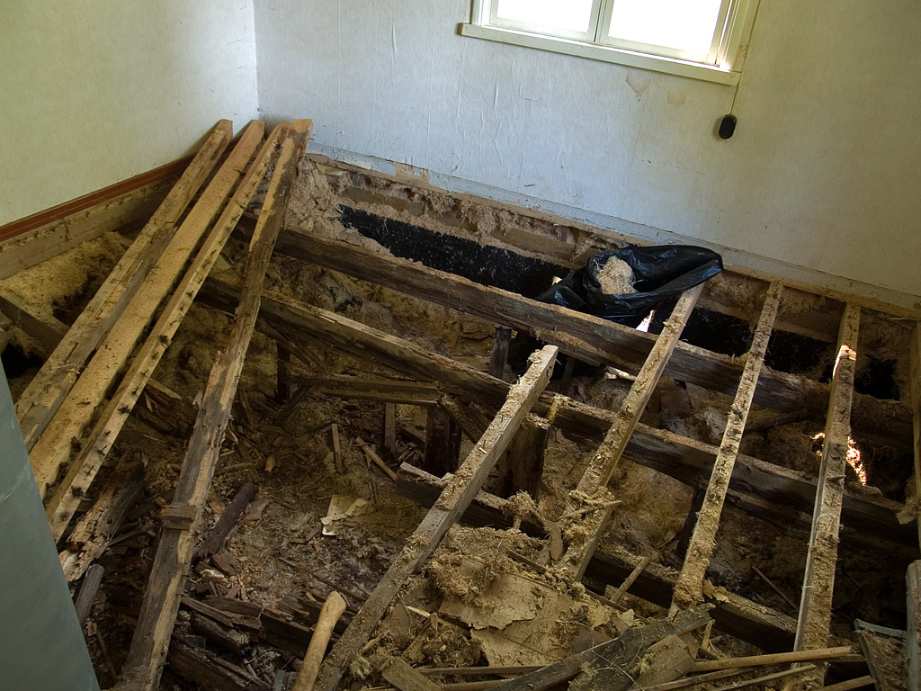 Дом построен полвека назад. Застеклённая веранда, сауна, жилая комната и чердак. Со временем пол утеплили, и в домике стало возможно жить не только летом, но и суровыми финскими зимами. При сломе старого пола нашел газеты, датированные 1948-ым годом, с гневными статьями про «красных комиссаров». Этими газетами была, по-видимому, переложена изоляция. Пол настолько прогнил, что большую часть я разобрал голыми руками. Даже ржавые гвозди-сотки ломались от небольшого усилия. Новые балки, доски, рейки и изоляцию заказал в строительном супермаркете строго нужного размера, так что работать пилой почти не пришлось. Фундамент треснул в нескольких местах, коробка дома сместилась и мне пришлось изрядно попотеть, чтобы несущие балки легли ровно в предназначенные им места.